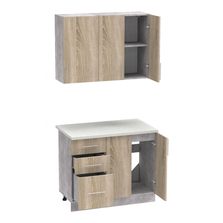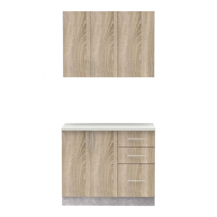 Σύνθεση κουζίνας Festa I pakoworld μελαμίνη σε sonoma απόχρωση και πάγκο σε ανοιχτό γκρι 100x60x85εκ