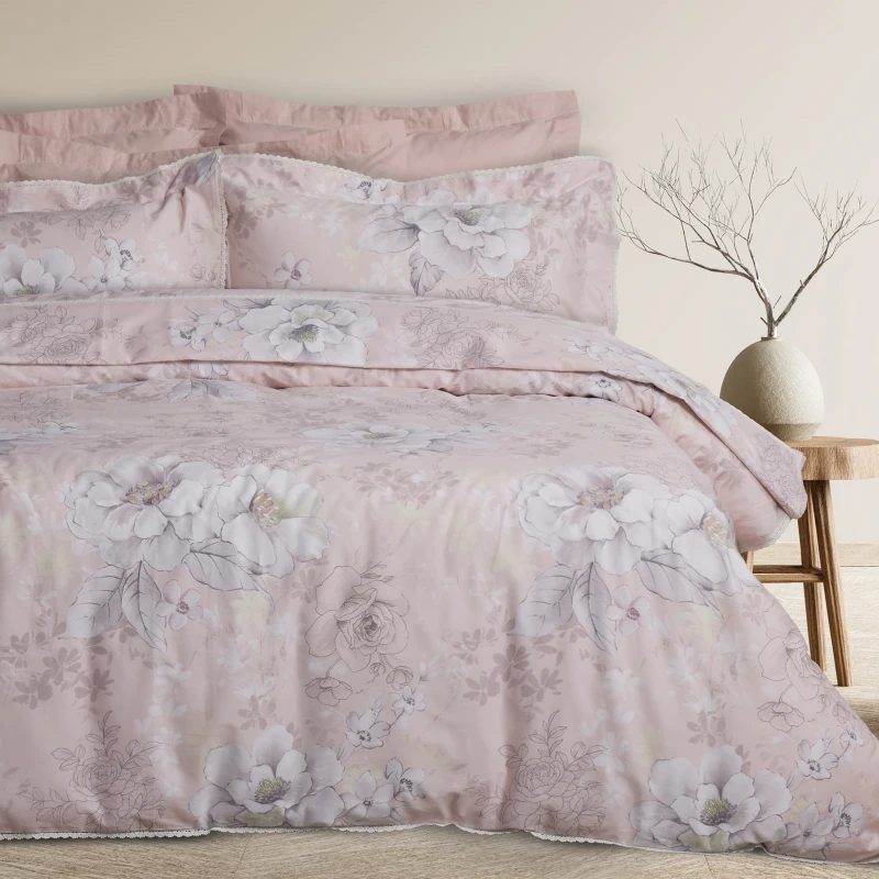 Σετ Παπλωματοθήκη Βαμβακοσατέν Υπέρδιπλη 220x240εκ. Prestige 1711 Grey-Pink Das Home