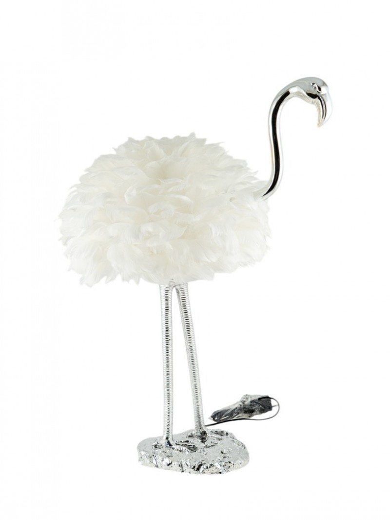 Φωτιστικό επιτραπέζιο πουλί σε ασημί χρώμα με λευκά πούπουλα από την Zen Collection - Διαστάσεις: 40x70εκ.