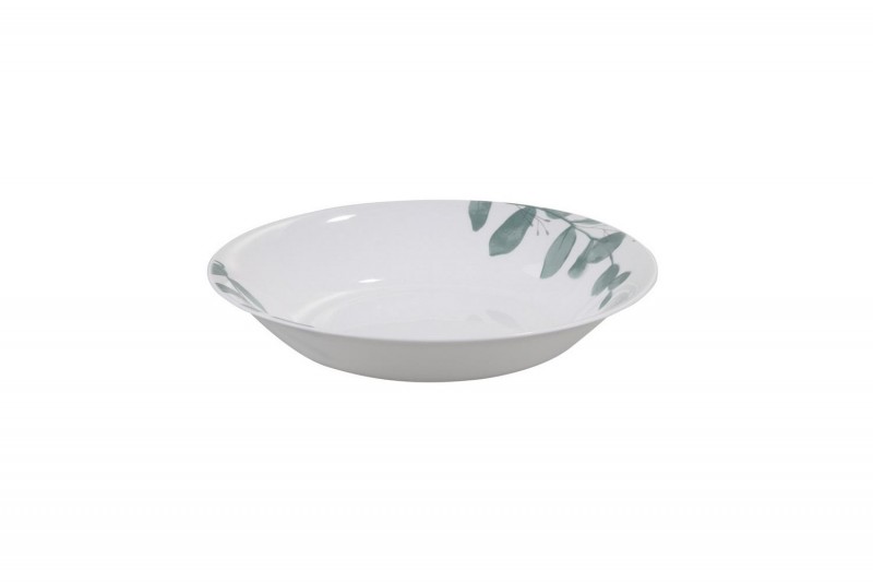 Πιάτο βαθύ φαγητού γυάλινο σε λευκό χρώμα με σχέδιο πράσινα φύλλα της σειράς Leaf από την Eaton Dining - Διαστάσεις: 22εκ. - Η ελάχιστη ποσότητα αγοράς για αυτό το προϊόν είναι 6τμχ.