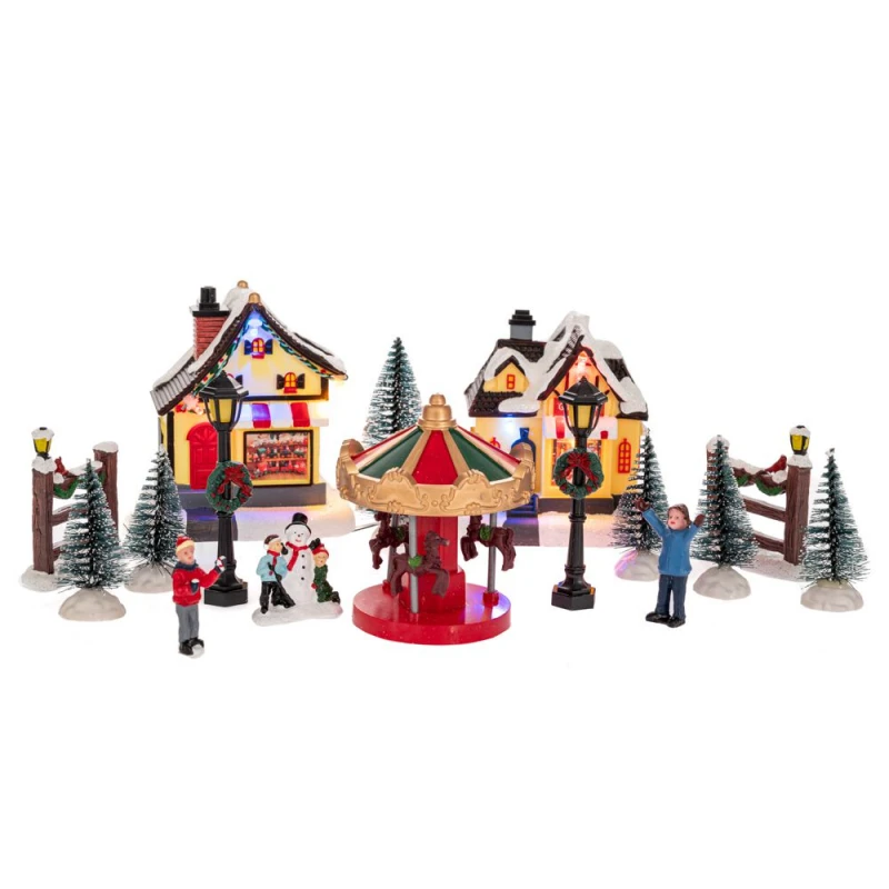 Χριστουγεννιάτικες φιγούρες κατασκευασμένες από πολυρεζίνη που συνθέτουν ένα χριστουγεννιάτικο χωριό. Απαρτίζεται από φιγούρες με σπίτια φωτιζόμενα, παιδάκια, δέντρα καθώς και καρουζέλ. Λειτουργεί με μπαταρίες οι οποίες δεν περιλαμβάνονται.