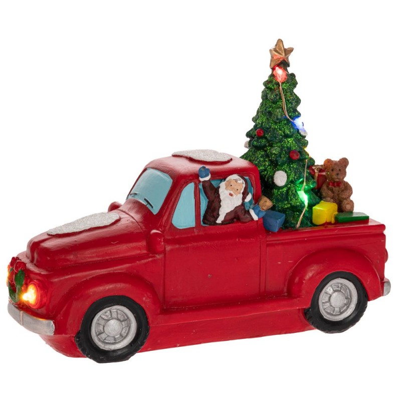 Χριστουγεννιάτικο φορτηγάκι σε κόκκινο χρώμα με οδηγό τον Άγιο Βασίλη. Η καρότσα έιναι γεμάτη με δώρα καθώς και με ένα στολισμένο δέντρο με led φωτάκια. Είναι κατασκευασμένο από πολυρεζίνη και λειτουργεί με 3 μπαταρίες ΑΑ, οι οποίες δεν περιέχονται.