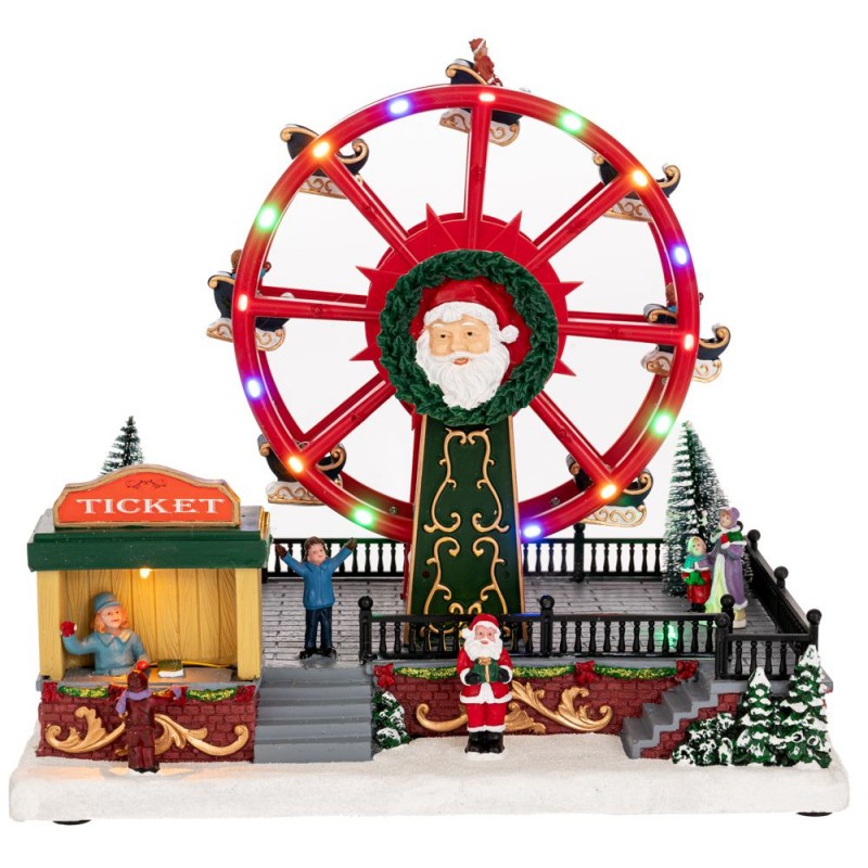 Χριστουγεννιάτικη σκηνικό λούνα παρκ με εντυπωσιακή ρόδα καρουζέλ που περιστρέφεται και φωτιζόμενο εκδοτήριο. Η ρόδα είναι διακοσμημένη με led πολύχρωμα φωτάκια καθώς και με το πρόσωπο του Άγιου Βασίλη.