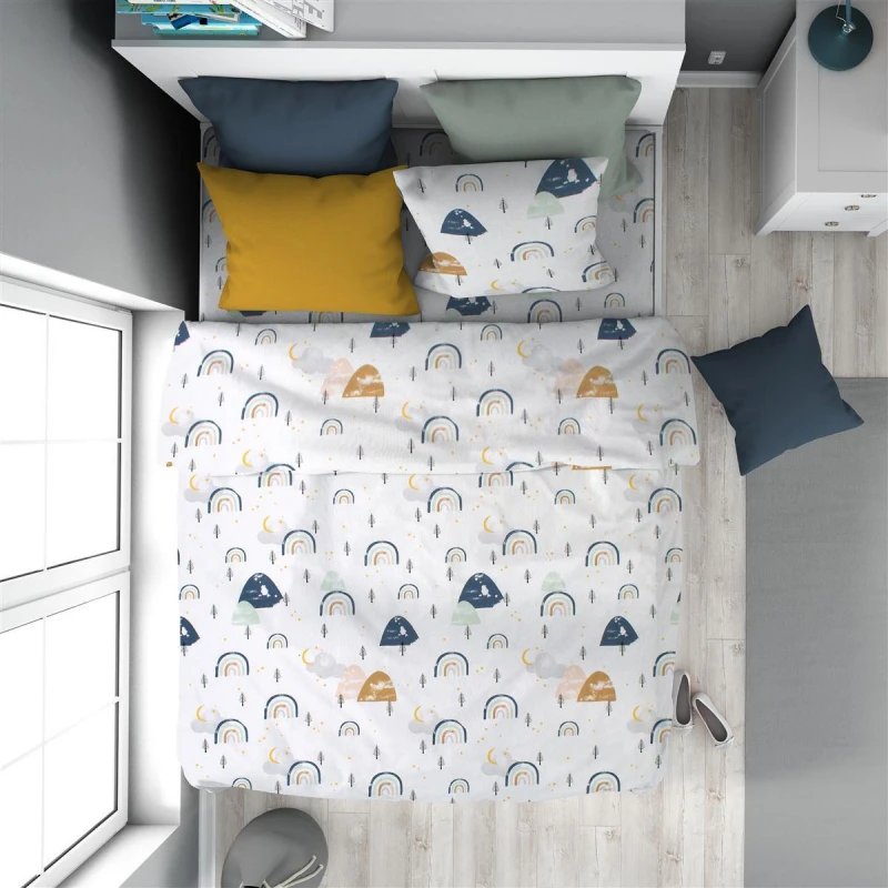 Πάπλωμα Παιδικό Βαμβακερό Μονό 160x240εκ. Rainbow 574 White-Blue DimCol 32111123053
