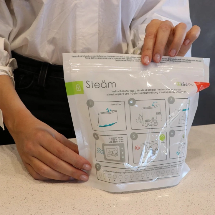 Το Steam κάνει την αποστείρωση απλή, γρήγορη και απόλυτα πρακτική. Είτε θέλετε να αποστειρώσετε μπιμπερό, θηλές, πιπίλες, εξαρτήματα θηλάστρου ή άλλα αξεσουάρ της bbluv, οι σακούλες αποστείρωσης μικροκυμάτων Quick-Steam εξουδετερώνουν βακτήρια και μικρόβια σε λίγα μόλις λεπτά!