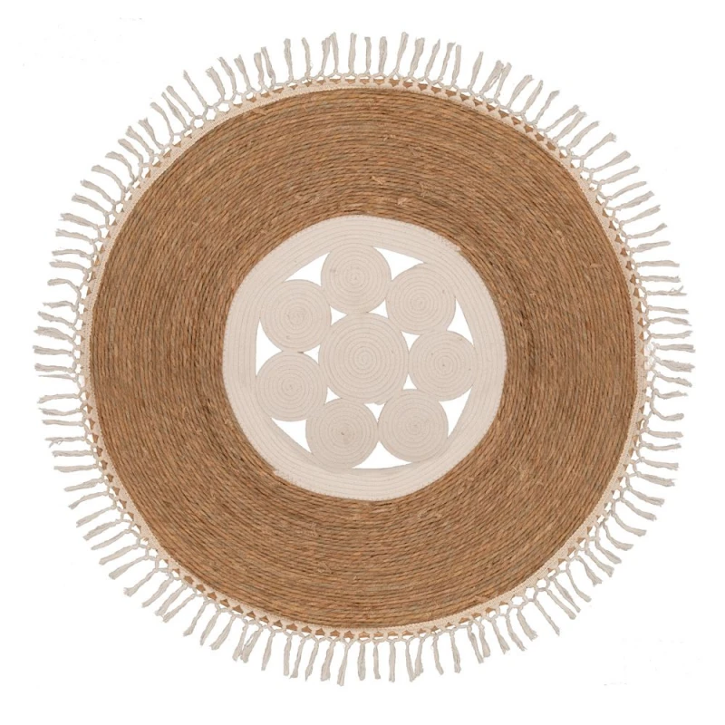 Χαλί στρογγυλό boho style απο γιούτα και βαμβάκι σε χρώμα καφέ natural - μπεζ και κρόσσια από την iliadis - Διαστάσεις: 100εκ.