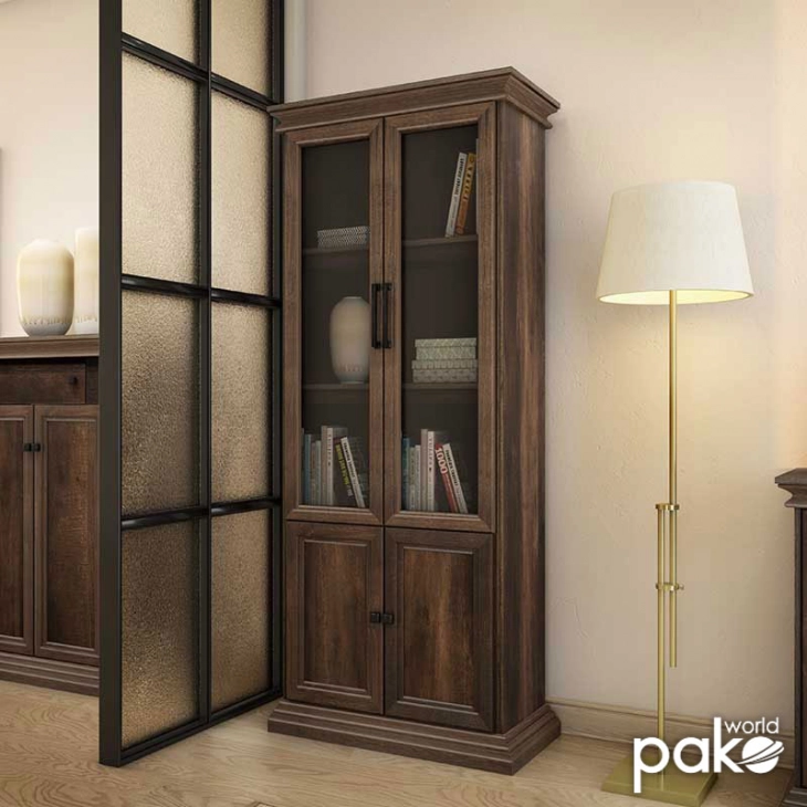 Βιτρίνα - ντουλάπα Mozart pakoworld με τζάμι χρώμα καρυδί 78,5x38x188εκ