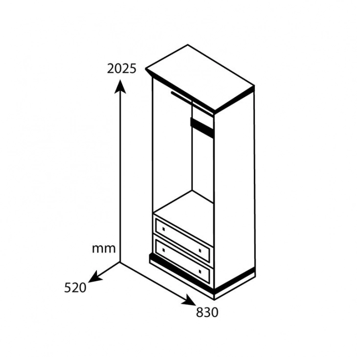Ντουλάπα ρούχων δίφυλλη Mozart χρώμα καρυδί 83x52x202,5εκ