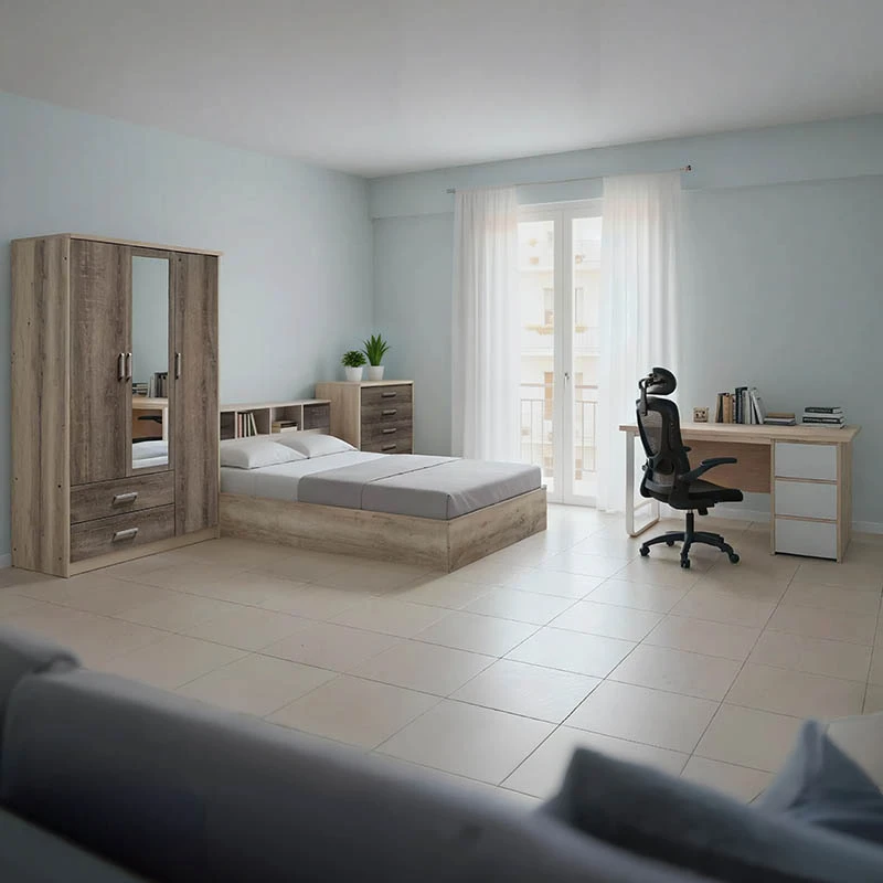 Ντουλάπα: Με καθρέπτη και άφθονο χώρο για να οργανώσεις όλα σου τα ρούχα και τα προσωπικά σου αντικείμενα.
