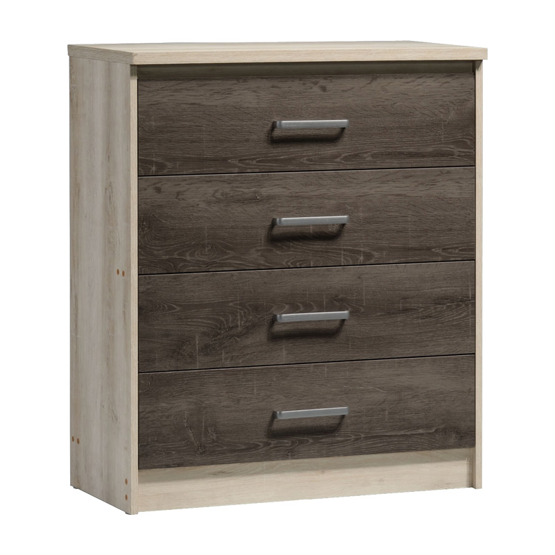 - Φέρει τέσσερα μεγάλα συρόμενα συρτάρια σε σκούρη απόχρωση. Υψος συρταριού εξωτ: 20εκ -εσωτ 15εκ