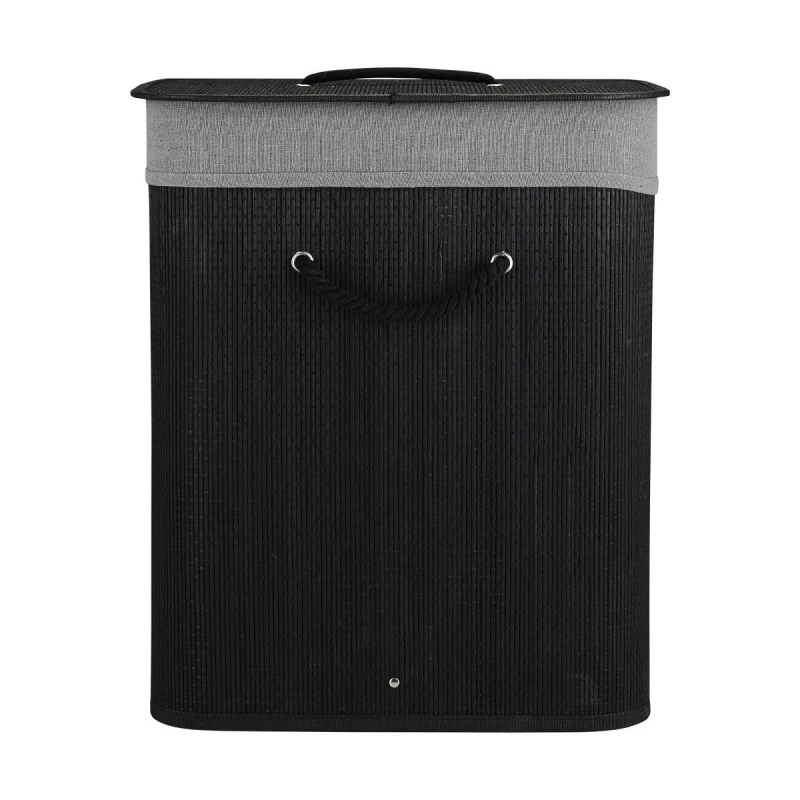 Καλάθι απλύτων bamboo πτυσσόμενο ορθογώνιο σε μαύρο χρώμα με πλέξη της σειράς Essentials από την Estia - Διαστάσεις: 40x30x50εκ., Χωρητικότητας: 60lt.