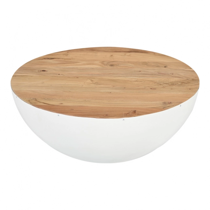 Τραπέζι σαλονιού Coffelty Inart λευκό μέταλλο-μασίφ ξύλο ακακίας Φ90x40εκ