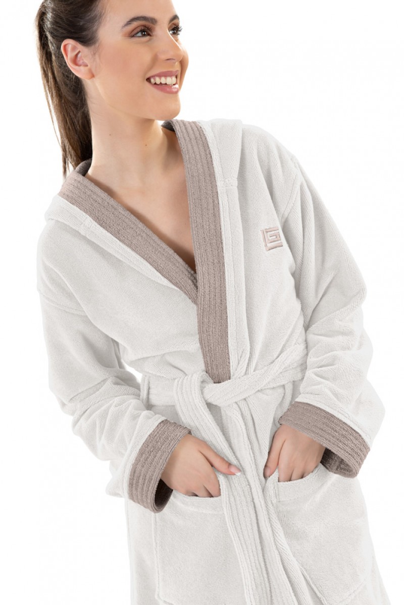 Μπουρνούζι ενηλίκων από την εταιρεία Guy Laroche Paris. Κατασκευασμένο από 60% βαμβάκι και 40% polyester έχει βελουτέ υφή και είναι εξαιρετικά μαλακό και απορροφητικό. Διαθέτει ζώνη και τσέπες. Ιδανικό για χρήση μετά το μπάνιο.