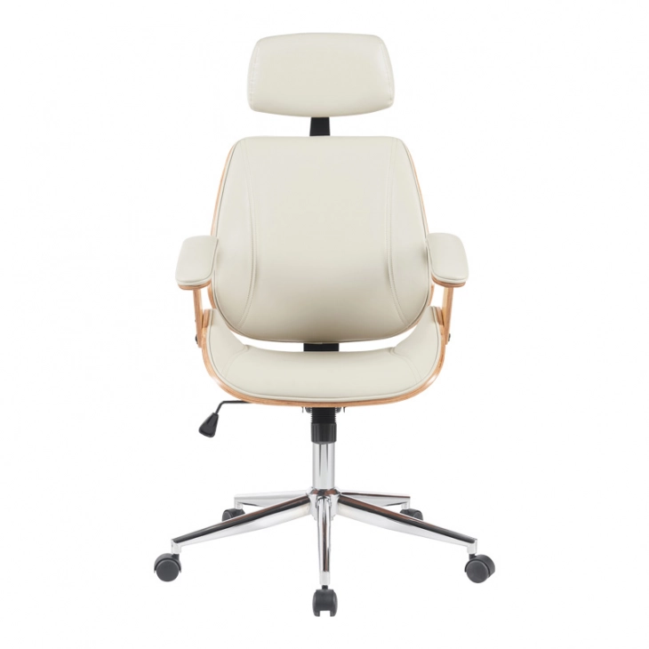 Καρέκλα γραφείου διευθυντή Fetseno pakoworld μπεζ pu-βάση χρωμίου 53x56x113.5-123.5εκ