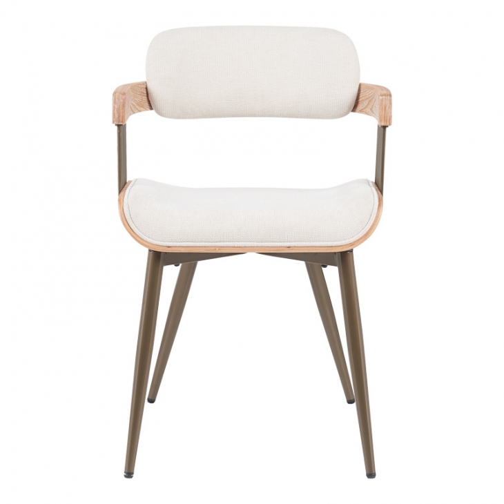 Η πολυθρόνα τραπεζαρίας Cameo συνδυάζει αρμονικά τη σύγχρονη αισθητική με την άνεση. Διαθέτει ένα καμπυλωτό κάθισμα και πλάτη, επενδυμένα με ένα απαλό ύφασμα που προσφέρει εξαιρετική άνεση για παρατεταμένα γεύματα. Οι λεπτομέρειες από φυσικό ξύλο στα μπράτσα προσθέτουν μια ζεστή, οργανική αίσθηση, ενώ οι λεπτές μεταλλικές ράβδοι στην πλάτη προσφέρουν μια ενδιαφέρουσα οπτική αντίθεση και υποστήριξη. Τα μεταλλικά πόδια ολοκληρώνουν την εκλεπτυσμένη εμφάνιση, προσδίδοντας σταθερότητα αλλά και μια αίσθηση ελαφρότητας.