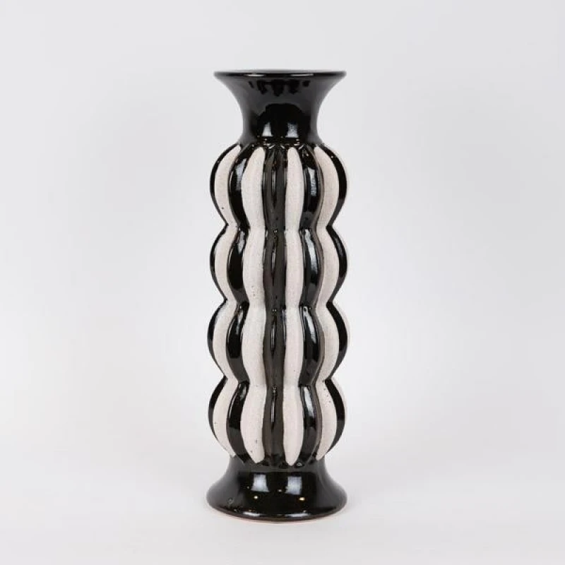 Κηροπήγιο κεραμικό σε μαύρο - λευκό χρώμα από την ESTHETI - Διαστάσεις: 13x39,5εκ.