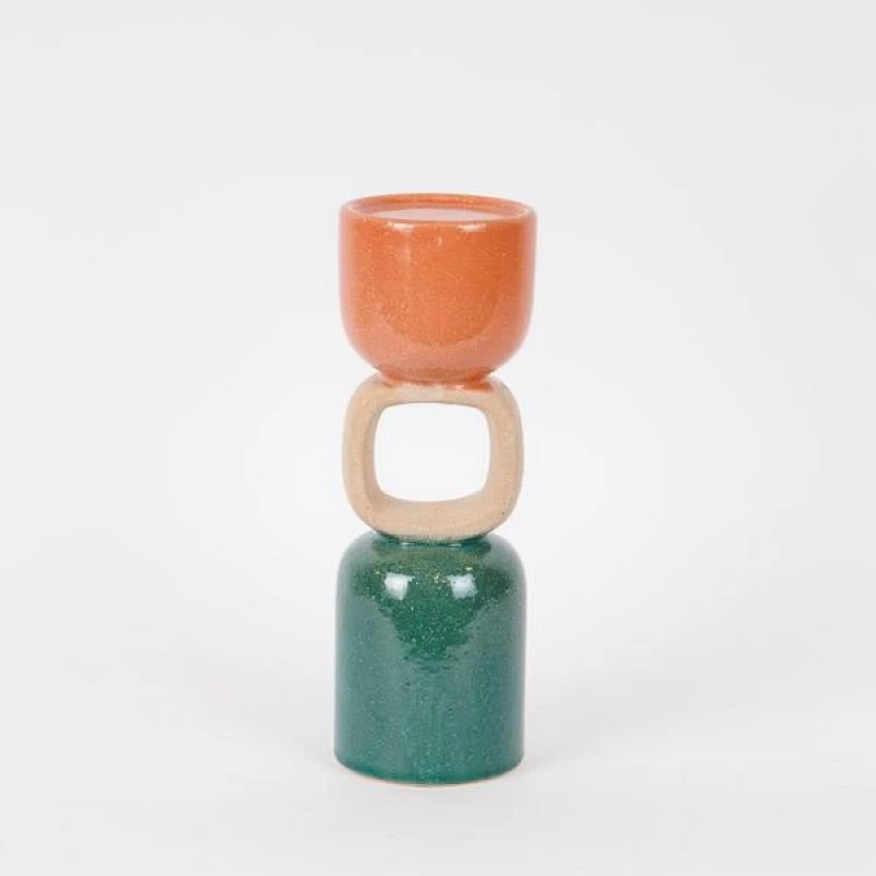 Κηροπήγιο κεραμικό σε πράσινο - μπεζ - σομόν χρώμα από την ESTHETI - Διαστάσεις: 9x26εκ.