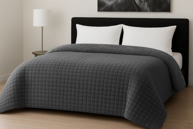 Κουβερτοπάπλωμα flannel comfort 2 όψεων με γέμιση 100% πολυεστερική βατά 250gr με σχέδιο τετραγωνάκι σε σκούρο γκρι χρώμα, 700gsm από την Le Blanc - Διαστάσεις: 260x240εκ.