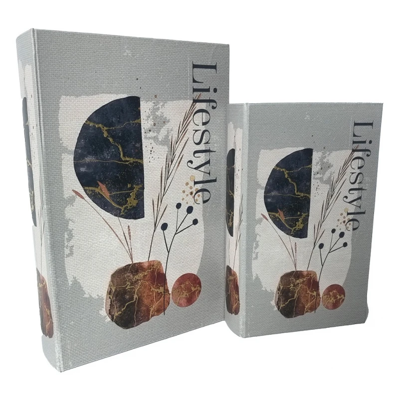 Σετ 2τμχ διακοσμητικά κουτιά σε σχήμα βιβλίου σε γκρι χρώμα από την ESPIEL - Διαστάσεις: 30x20x6,5εκ.-24x15x4,5εκ.