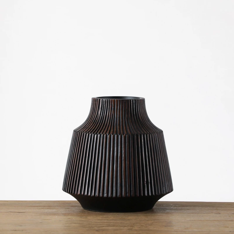 Βάζο ανάγλυφο polyresin σε καφέ χρώμα από την ESPIEL - Διαστάσεις: 24,5x24,5εκ.