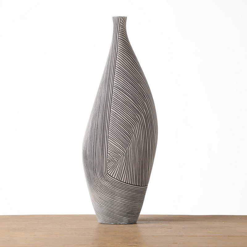 Βάζο ανάγλυφο polyresin σε γκρι χρώμα από την ESPIEL - Διαστάσεις: 19x11x51εκ.