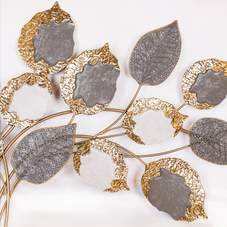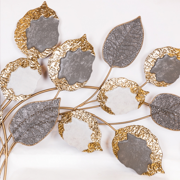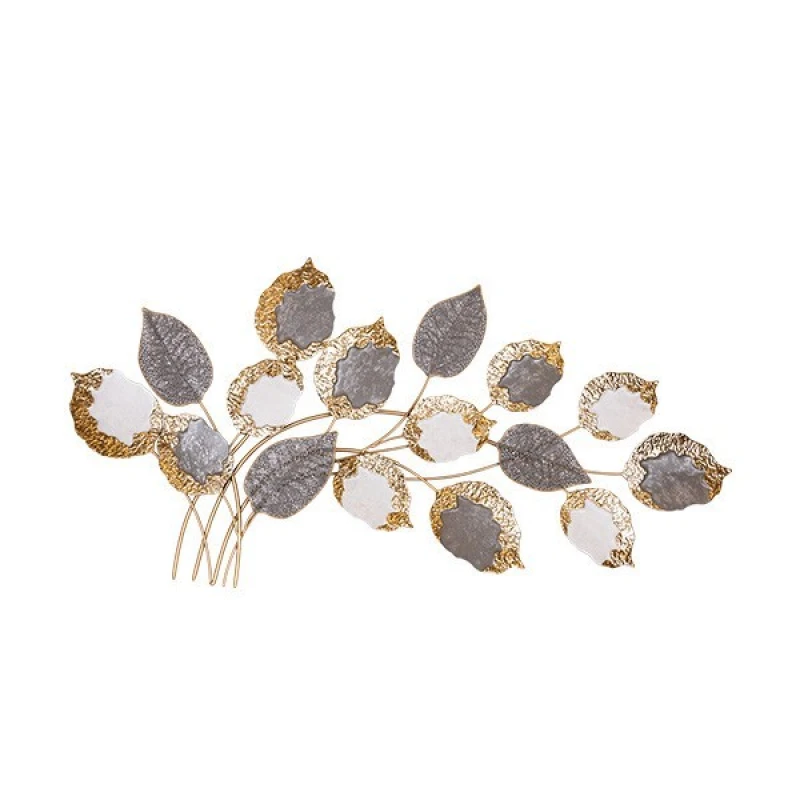 Διακοσμητικό Τοίχου Μεταλλικό Φύλλα Χρυσό-Γκρι-Λευκό 118x5,5x60εκ. ESTHETI 812-30014