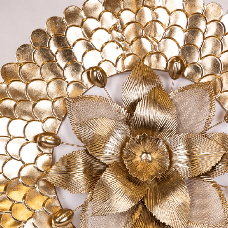 Διακοσμητικό τοίχου μεταλλικό, με σχέδιο λουλούδι σε χρυσό χρώμα από την ESTHETI - Διαστάσεις: 76,5x8x77,5εκ.