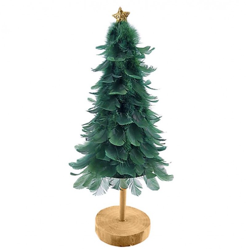 Χριστουγεννιάτικο δεντράκι γραφείου με φτερά και πούπουλα σε πράσινο χρώμα, με βάση κορμού από την Xmas fest - Διαστάσεις: 12x33εκ.