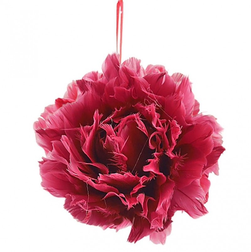 Χριστουγεννιάτικο στολίδι κρεμαστό λουλούδι με φτερά και πούπουλα σε κόκκινο χρώμα από την Xmas fest - Διαστάσεις: Δ10εκ. - Η ελάχιστη ποσότητα αγοράς για αυτό το προϊόν είναι 12τμχ.