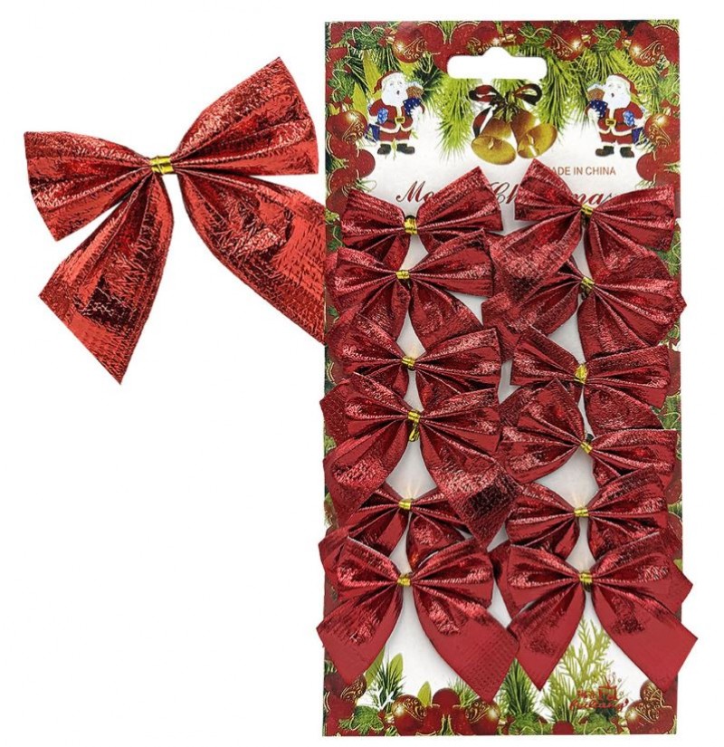 Σετ χριστουγεννιάτικοι φιόγκοι 12 τμχ γυαλιστεροί σε κόκκινο χρώμα από την Xmas fest - Διαστάσεις: 5,5x6εκ.