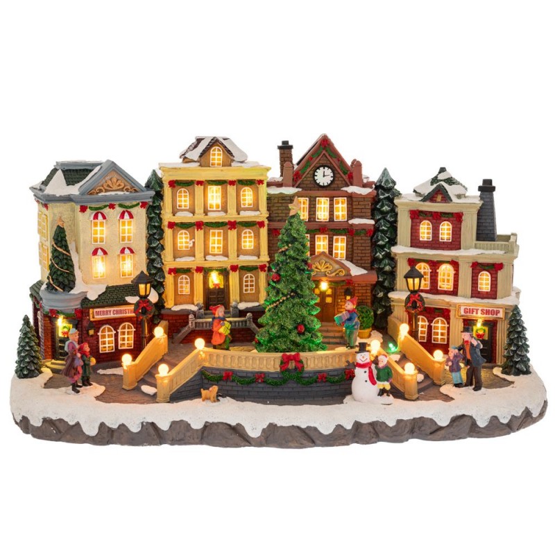 Παράσταση Χριστουγεννιάτικη polyresin - πλαστικό με αντάπτορα ρεύματος, χωριό με φως, μουσική και κίνηση από την iliadis - Διαστάσεις: 47x22x22,5εκ.