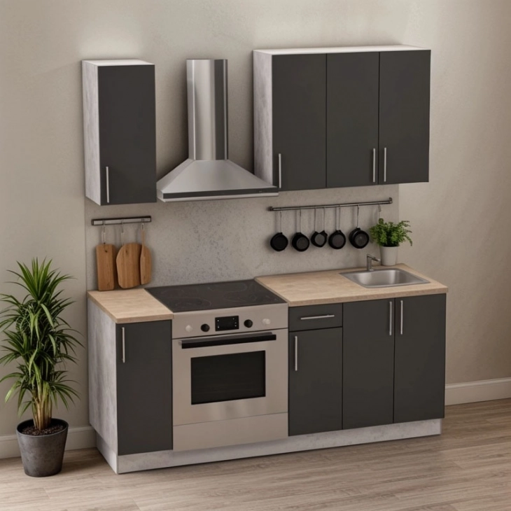 Σύνθεση κουζίνας Festa II pakoworld μελαμίνη σε ανθρακί και πάγκο σε sonoma απόχρωση 120x60x85εκ