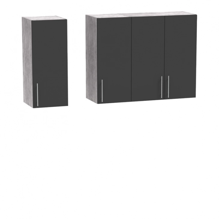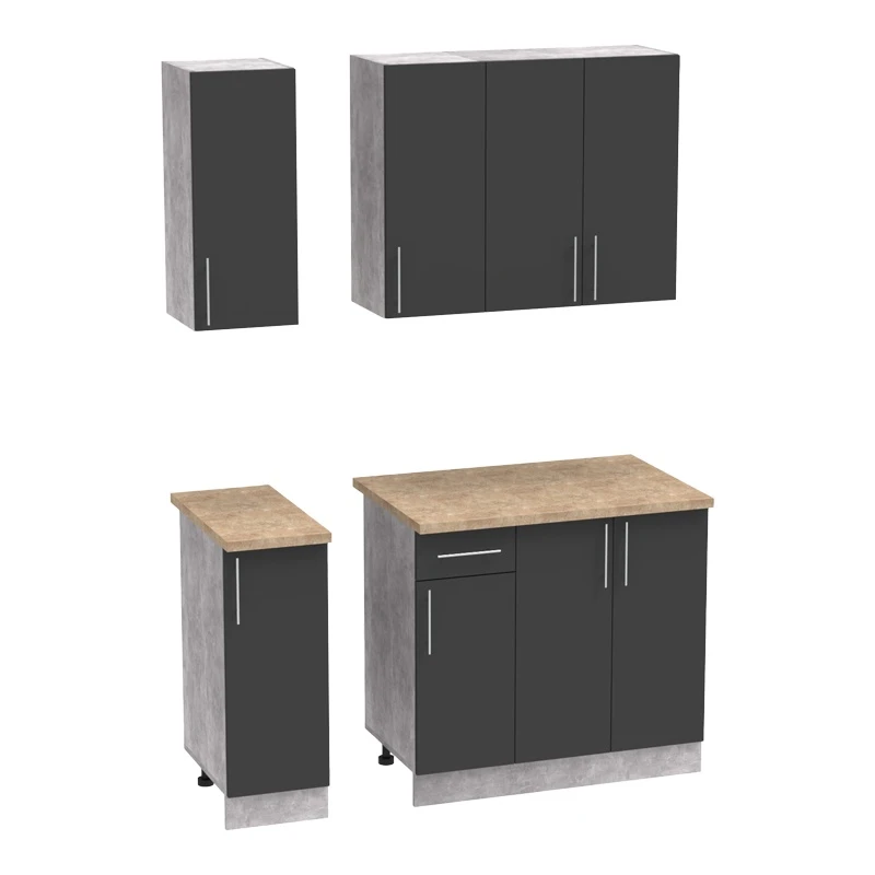 - Κάτω: Ένα διπλό ντουλάπι, ένα μονό και ένα ντουλάπι με συρτάρι