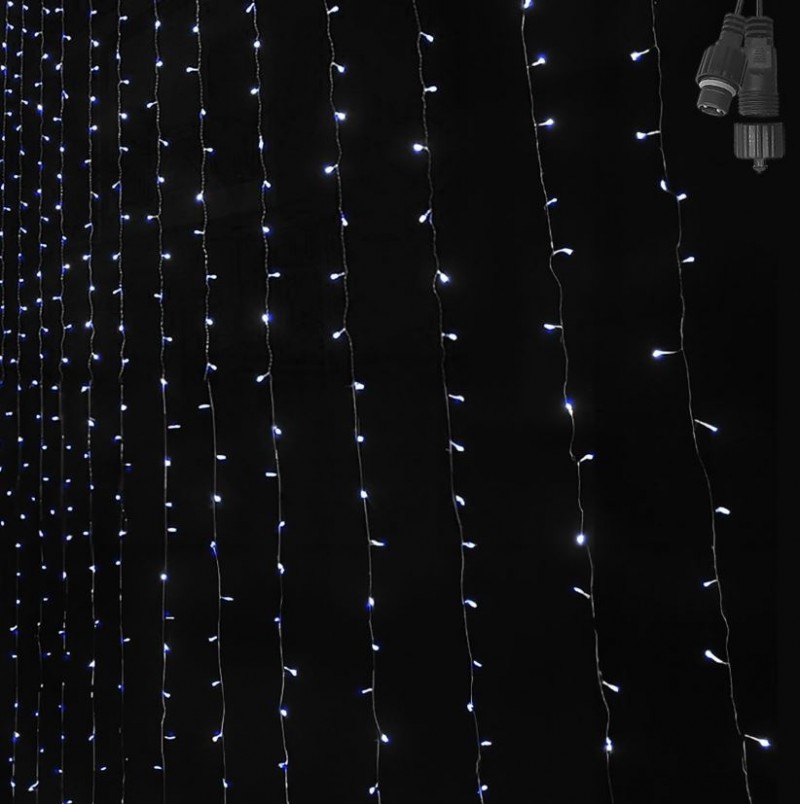 Λαμπάκια - κουρτίνα 100 Led-90x80εκ. με ψυχρό λευκό φως, επεκτεινόμενα (σύνδεση max 15 σειρές) και 8 προγράμματα, για εσωτερικό και εξωτερικό χώρο με πράσινο καλώδιο από την Xmas fest. Δεν περιέχεται ο μετασχηματιστής. Ο μετασχηματιστής που εφαρμόζει είναι το προιόν με κωδικό 93-3484