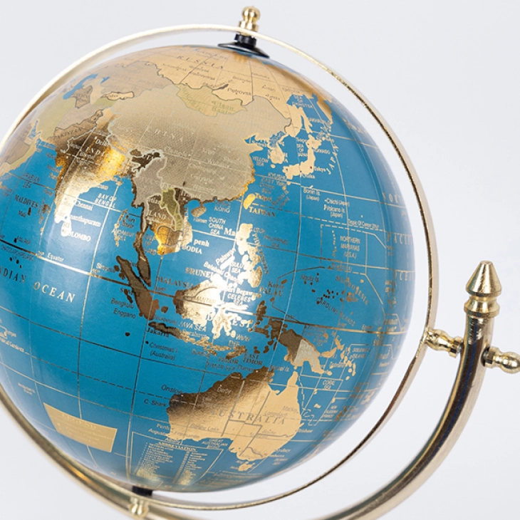 Διακοσμητική επιτραπέζια υδρόγειος σφαίρα μεταλλική σε χρυσό - μπλε χρώμα από την ESTHETI - Διαστάσεις: 20x31x36εκ.