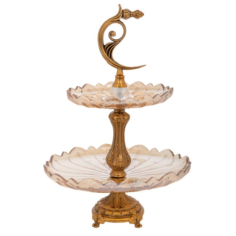 Ορντερβιέρα 2 όροφη γυάλινη - μεταλλική σε μελί - χρυσό χρώμα από την iliadis - Διαστάσεις: 22-31x50εκ.