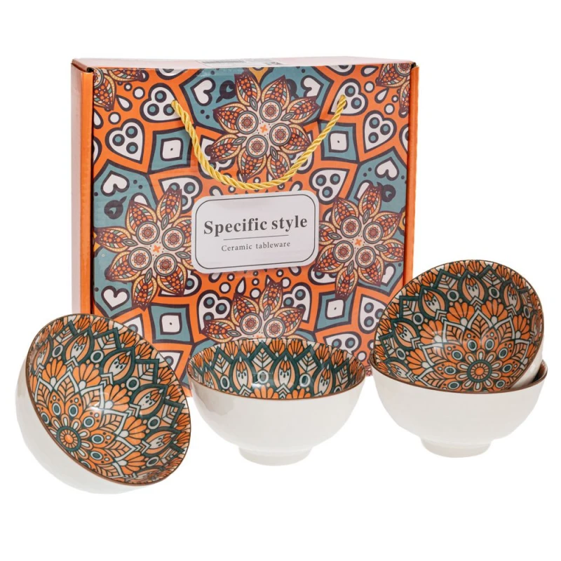 Σετ 4τμχ κεραμικά μπωλ σε πορτοκαλί χρώμα με γεωμετρικά σχέδια από την iliadis - Διαστάσεις: 11x6εκ.