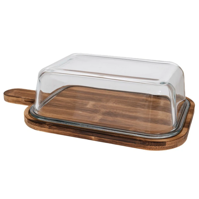 Πλατώ Σερβιρίσματος Ξύλινο Με Γυάλινο Καπάκι Natural-Διάφανο 30,5x18x8εκ. iliadis 91914