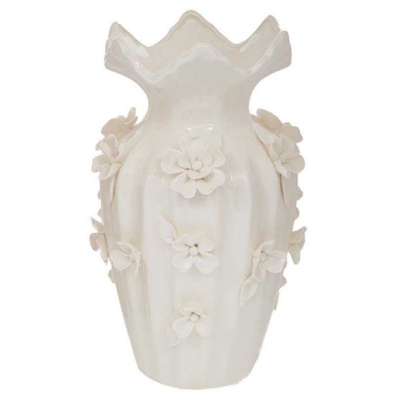 Κεραμικό βάζο με ανάγλυφα λουλούδια σε λευκό χρώμα απο την iliadis - Διαστάσεις: 20x31εκ.