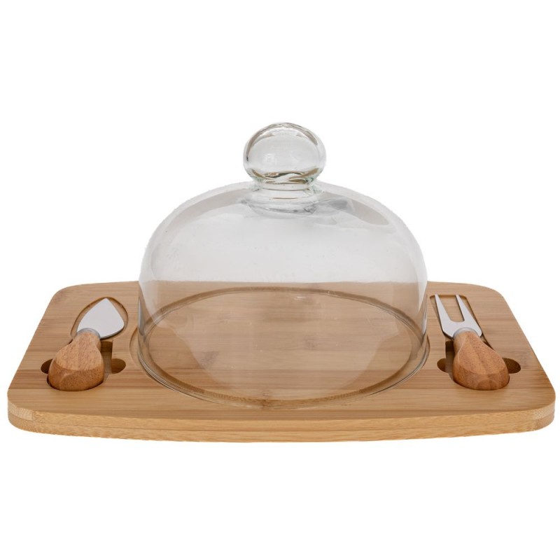 Πλατώ Σερβιρίσματος Τυριών Bamboo Με Γυάλινο Καπάκι Και Εργαλεία Natural-Διάφανο 28,5x18,5x14εκ. iliadis 91921