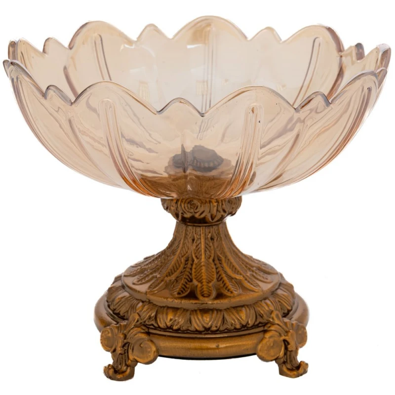 Διακοσμητικό μπωλ γυάλινο μελί, με μεταλλικό χρυσό πόδι από την iliadis - Διαστάσεις: 20x15εκ.