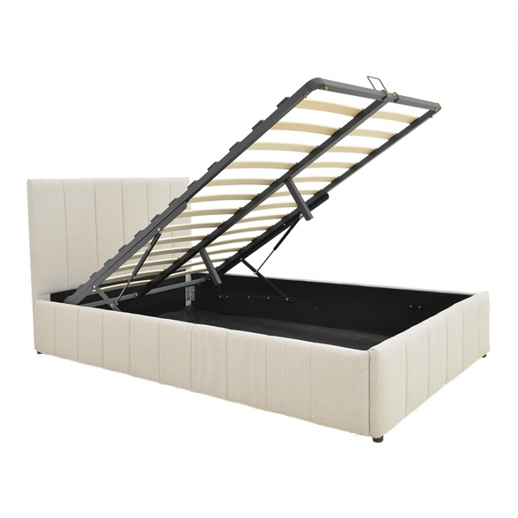 Το κρεβάτι διαθέτει έναν εύχρηστο μηχανισμό ανύψωσης του στρώματος, ο οποίος αποκαλύπτει έναν ευρύχωρο αποθηκευτικό χώρο από κάτω. Αυτό καθιστά εξαιρετικά εύκολη την τακτοποίηση κλινοσκεπασμάτων, μαξιλαριών, ρούχων εκτός εποχής ή άλλων αντικειμένων, συμβάλλοντας αποτελεσματικά στην οργάνωση και την τάξη του χώρου.
