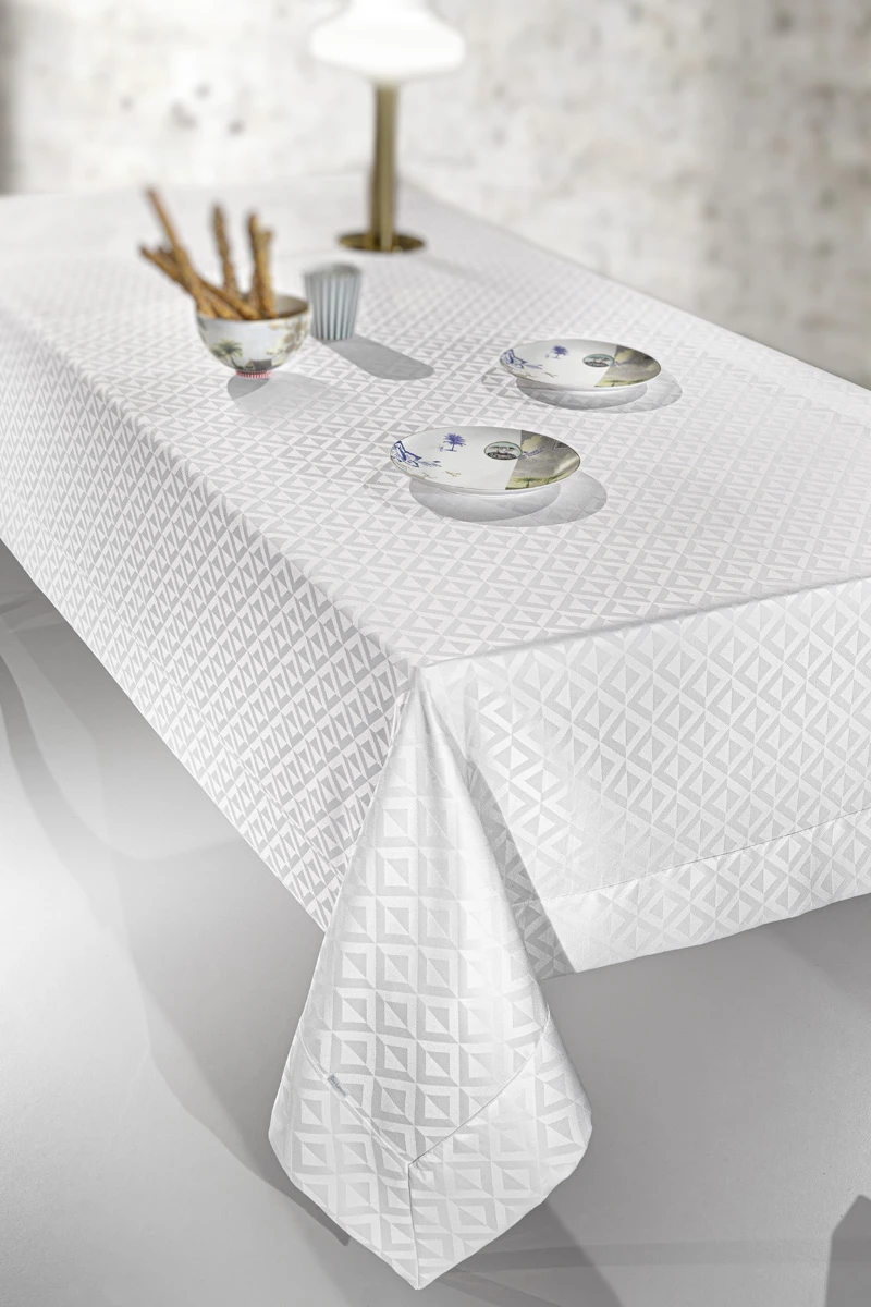Ένα διαχρονικό τραπεζομάντηλο με jacquard πλέξη και απαλή υφή, σε ουδέτερους χρωματικούς τόνους το οποίο μπορεί να ταιριάξει σε όλες τις τραπεζαρίες.