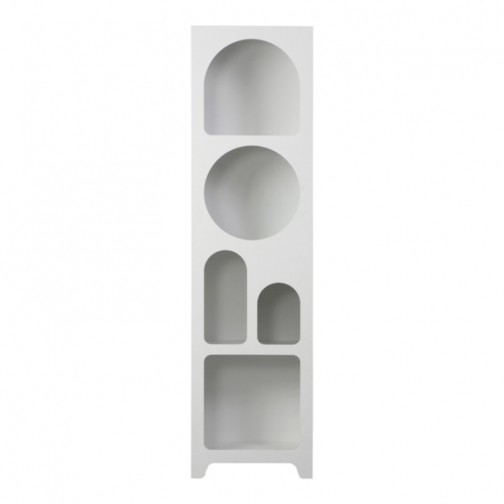 Με τον μοντέρνο, λευκό του σχεδιασμο και τα ιδιαίτερα τμήματα - μερικά καμπυλωτά, άλλα πιο γεωμετρικά - η βιβλιοθήκη Emersi προσφέρει μια παιχνιδιάρικη αλλά ταυτόχρονα οργανωμένη λύση αποθήκευσης. Είναι ιδανικό για να αναδείξεις τα αγαπημένα σου βιβλία, διακοσμητικά ή φυτά, προσθέτοντας μια νότα στυλ σε κάθε χώρο.