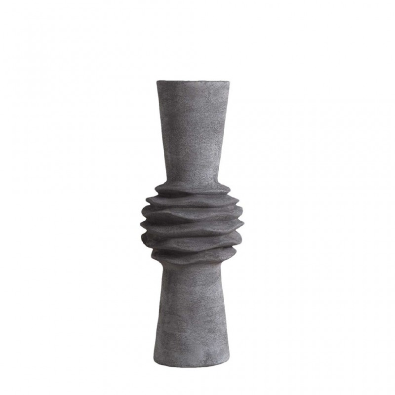 Βάζο κεραμικό με ανάγλυφο σχέδιο σε γκρι χρώμα από την ESPIEL - Διαστάσεις: 13x13x35,5εκ.