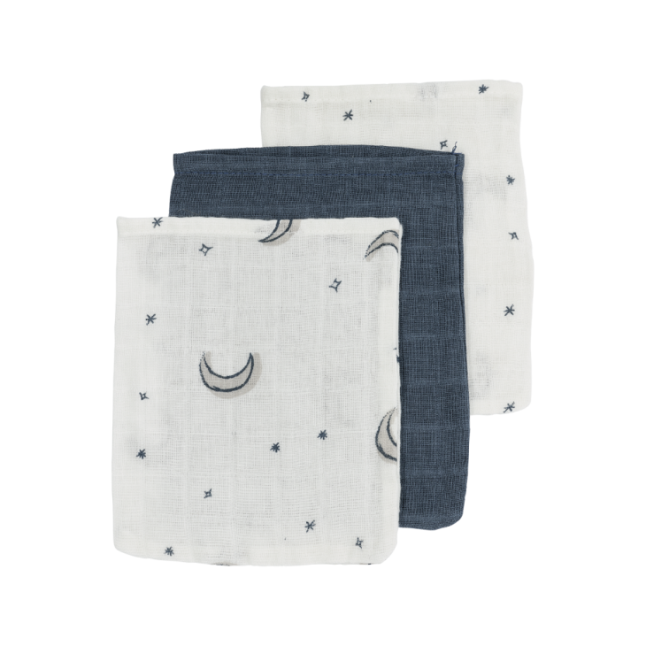 Σετ 3τμχ Απορροφητική Λαβέτα-Μουσελίνα Βαμβακερή Moon Indigo 30x30εκ. Meyco MEY-152.AE.BX.02.M3