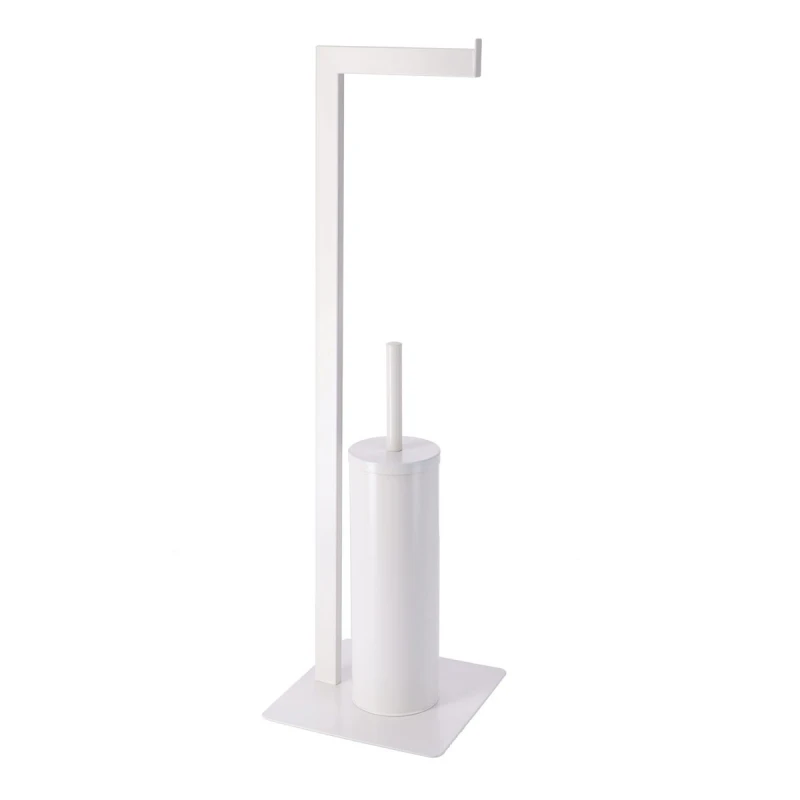 Ανανεώστε το μπάνιο σας με αυτό το μοντέρνο και λειτουργικό σταντ χαρτιού υγείας και πιγκάλ. Ο κομψός σχεδιασμός του συνδυάζει ανθεκτικά υλικά με σύγχρονη αισθητική, προσφέροντας πρακτική λύση για την οργάνωση του χώρου υγιεινής σας. Η μεταλλική κατασκευή εξασφαλίζει μακροχρόνια χρήση, ενώ το λευκό φινίρισμα ταιριάζει σε διάφορα στυλ διακόσμησης. Ιδανικό για μπάνια που απαιτούν λειτουργικότητα χωρίς να θυσιάζουν την αισθητική.