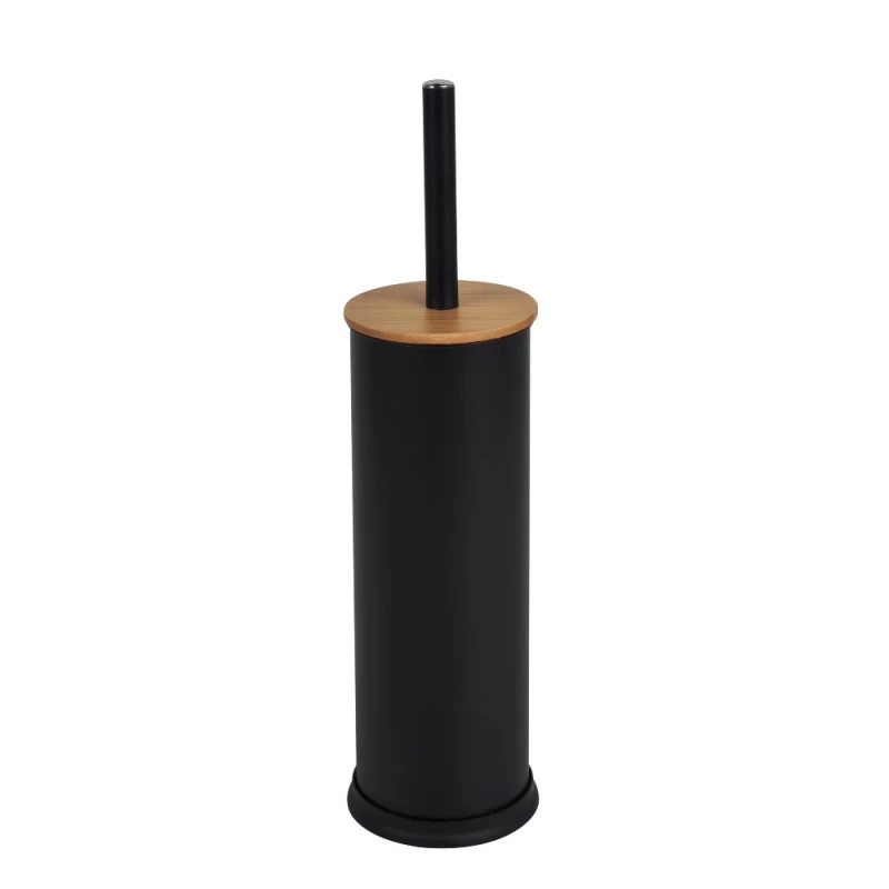 Μεταλλικό πιγκάλ μπάνιου σε μαύρη απόχρωση με καπάκι από bamboo. Συνδυάζει την αντοχή του μετάλλου με την φυσική υφή του bamboo, προσδίδοντας μοντέρνα, αλλά ταυτόχρονα ζεστή αισθητική στο μπάνιο σας. Ο συμπαγής και λειτουργικός σχεδιασμός του το καθιστά ιδανική επιλογή για οργανωμένους και κομψούς χώρους υγιεινής, ενώ τα ποιοτικά υλικά εξασφαλίζουν διάρκεια και ευκολία στην καθημερινή χρήση.