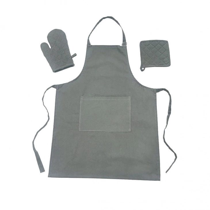 Σετ 3τμχ Ποδιά & Πιάστρα Με Γάντι Βαμβακερά Zoe Olive-Grey Melinen 20005240