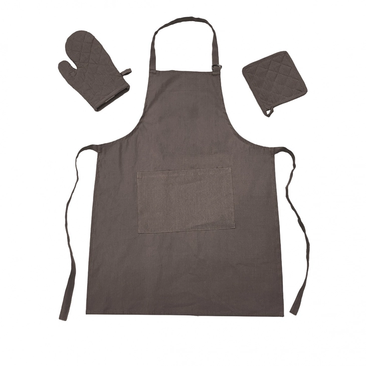 Σετ 3τμχ Ποδιά & Πιάστρα Με Γάντι Βαμβακερά Zoe Brown-Grey Melinen 20005241